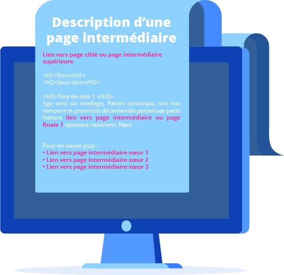 Enfin, les pages finales, qui ont pour objectif d’épauler les pages intermédiaires, se positionnent juste au-dessus d’elles. Une fois la création de ce silo réalisée, il faut procéder à la mise en place des liens à l’intérieur de ce dernier.